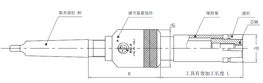 注:孔徑Φ26-68的滾壓刀有效加工長(cháng)度從B檔開(kāi)始柄部標配MT3,如需其他型號規格需定做。加工孔徑Φ40以上的滾壓刀,由于調節組件的外徑比加工孔徑小,可通過(guò)加長(cháng)柄部尺寸的方法增加加工長(cháng)度。