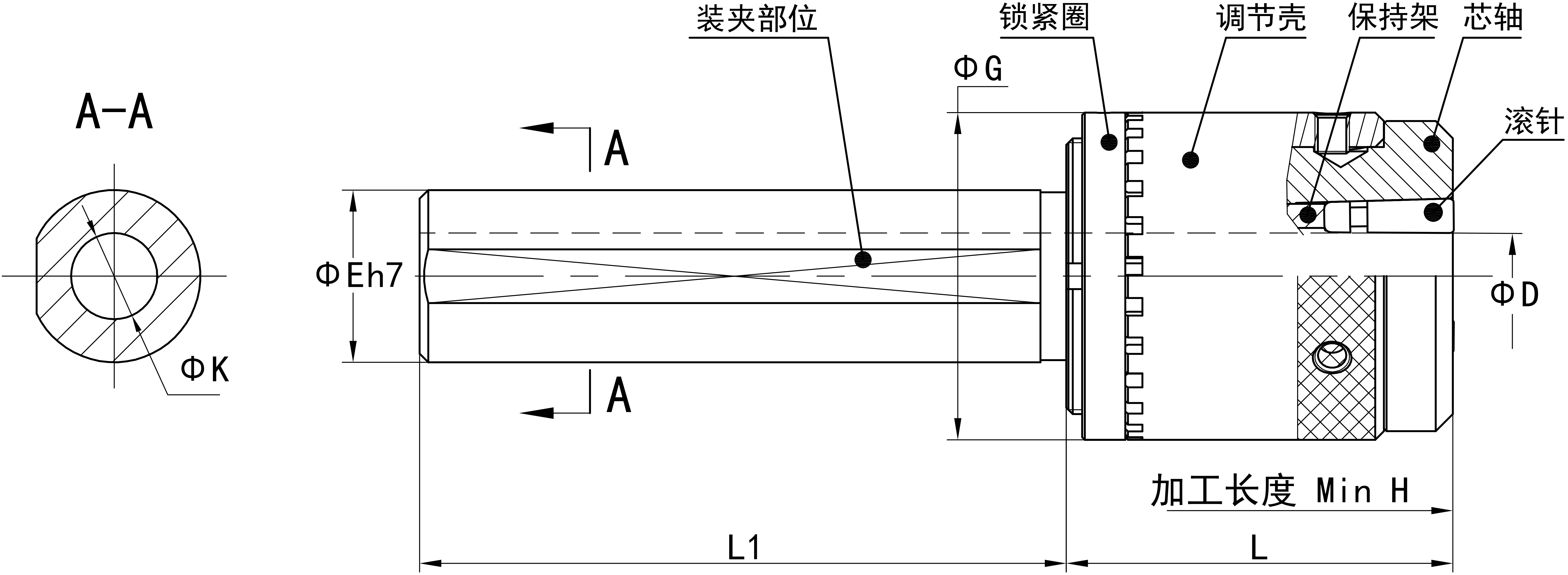 JC-WS系列工具比較適合安裝在有長(cháng)度限制的機床上,加工直徑Φ3-14mm。當裝夾部柄徑采用足夠直徑時(shí),由于柄部?jì)瓤状笥跐L壓尺寸,加工長(cháng)度將無(wú)限制。